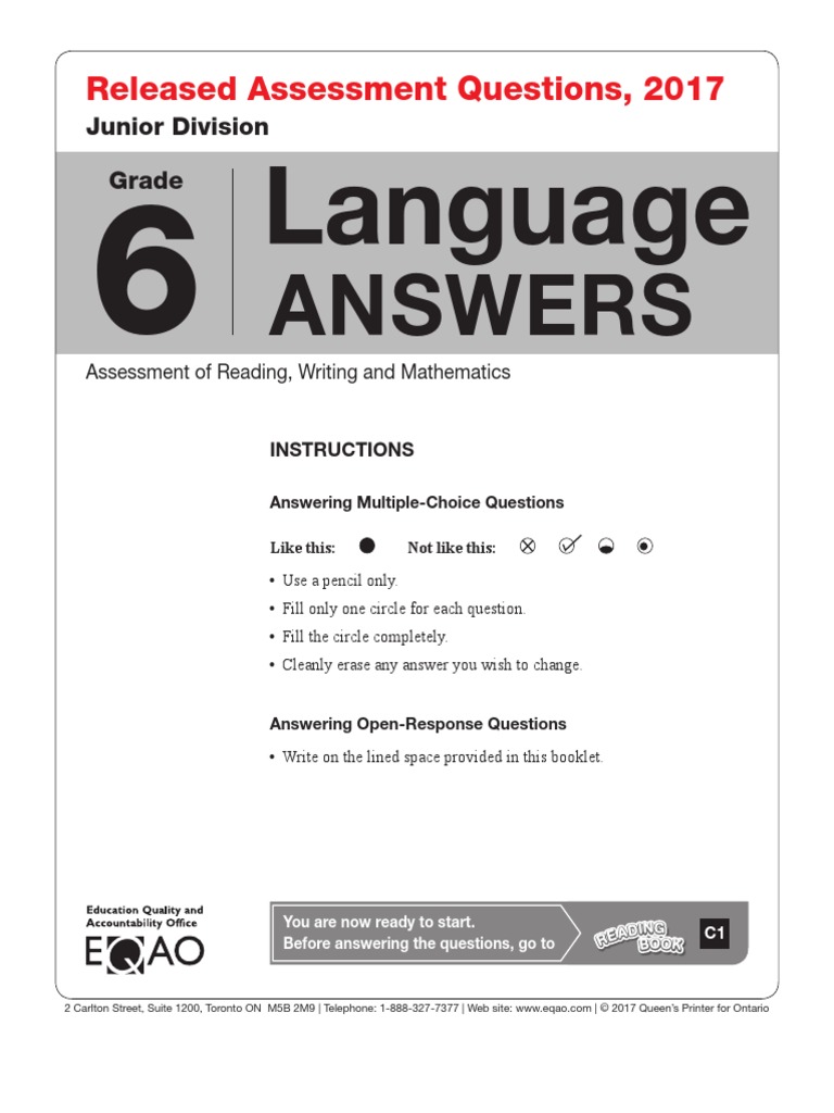 In 20002001 EQAO conducted four province-wide assessments. 9 Academic Sample Questions 2012pdf. Language 1 5 Grade 3 Spring 2012 Section A.